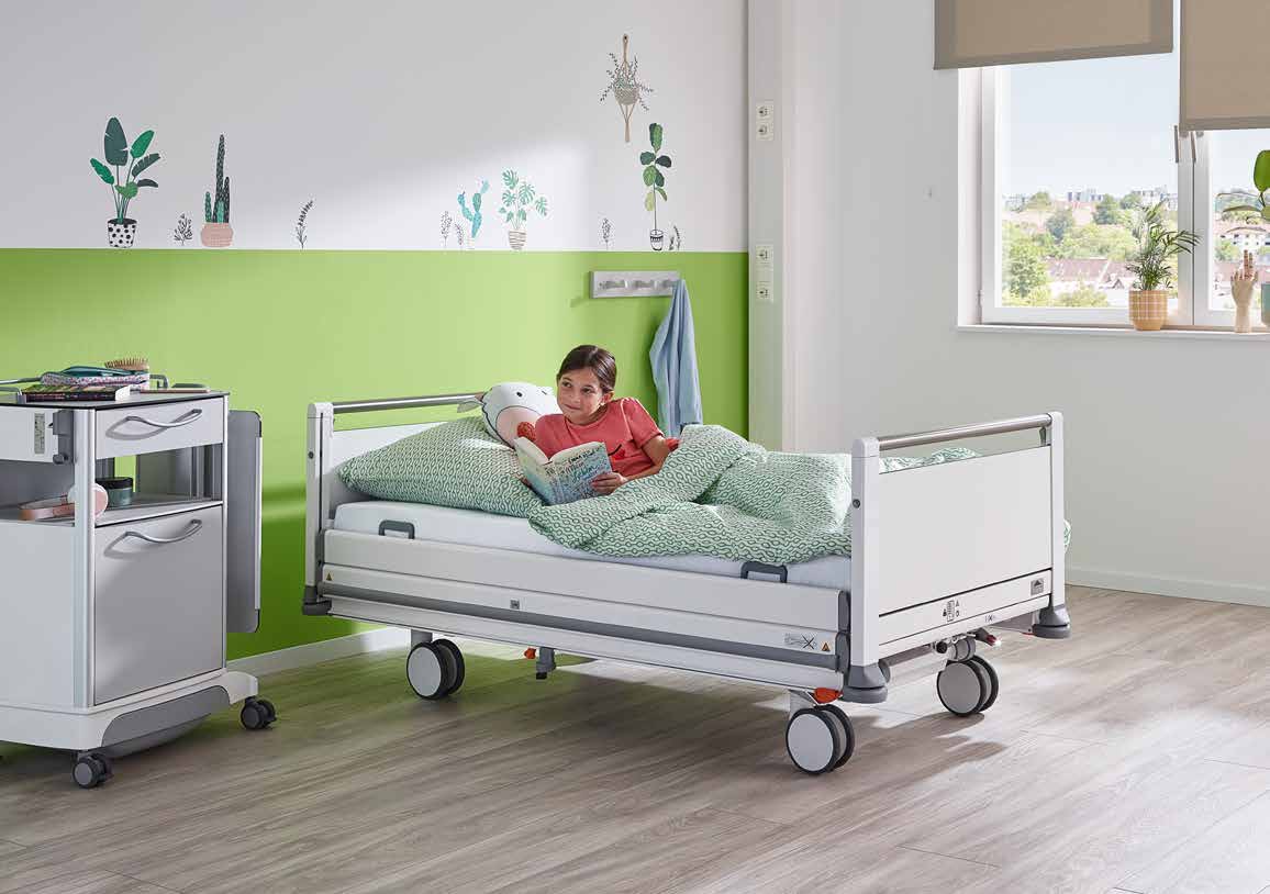 Seta Pro Junior er designet specielt til unge patienter. Sengen lever op til de nyeste EU-standarder og lovmæssige krav (DIN EN 50637), og den fungerer dermed som en sikker og tryg base for barnet.
