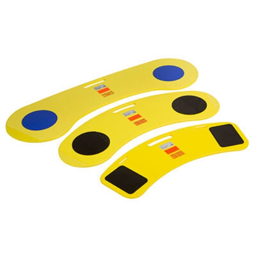 Banana glidebræt. Forenkler forflytning fra seng til køre-/toiletstol, kørestol til stol og kørestol til bil osv. Minimerer hjælpen fra hjælper/plejepersonale. Afhjælper belastning af ryggen ved forflytning. Hjælper med til, at gøre forflytning mindre stressende for bruger. Faconen gør det nemmere at, placere glidebrættet korrekt i forbindelse med forflytninger. Fremstillet af absolut brudsikkert materiale (HDPE), er syre-resistent, let at rengøre og desinficere. Et specielt udviklet anti-skrid sikrer positioneringen på sengen, i kørestolen, i stolen osv. Er udviklet i samarbejde med fysio- og ergoterapeuter. Vægt: 904024: 1,2 kg. 904025: 2,6 kg. 940438: 2,9 kg. Brugervægt/Afstand mellem støttepunkter. 130 kg / < 30 cm. 180 kg / < 20 cm. Anvend kortest mulig afstand mellem de 2 forflytningspunkter for optimal sikkerhed for bruger.