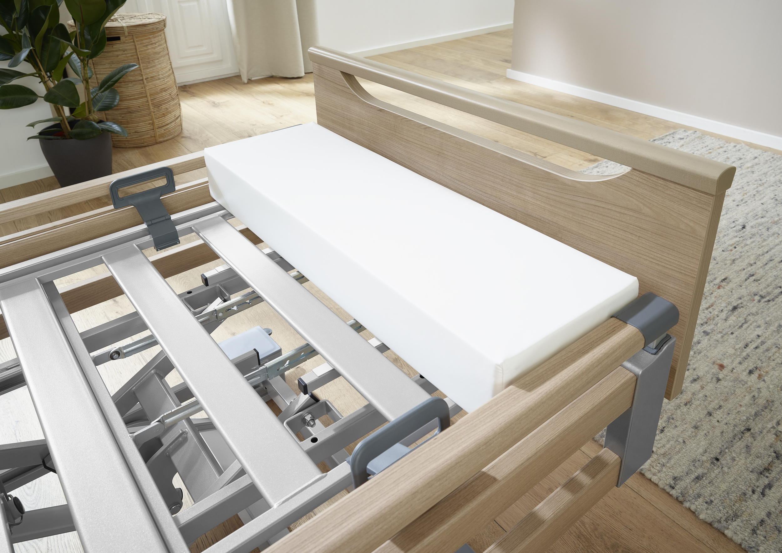 Sengen kan justeres i højden fra 26-80 cm. Det giver borgeren ekstra sikkerhed, forebygger fald og sikrer en god ergonomisk arbejdshøjde for plejepersonalet.