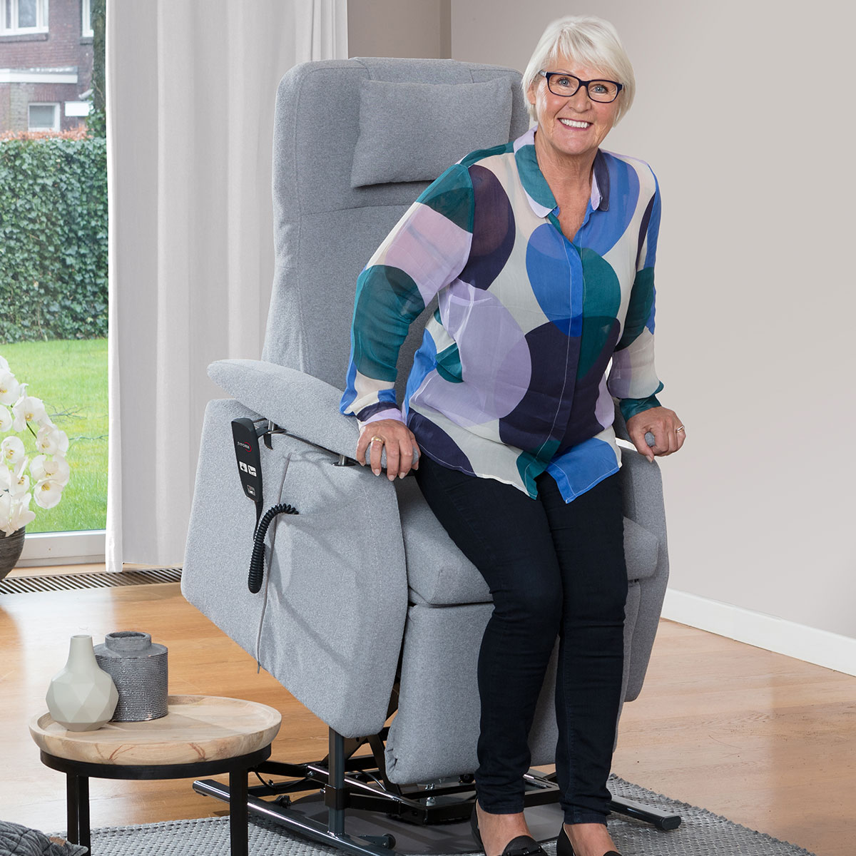 - Sikker stand-up funktion; at hjælpe brugeren ind og ud af stolen er nemt
